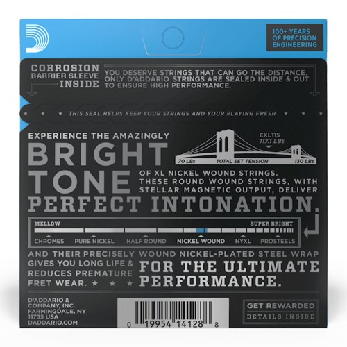 D’Addario EXL115 Nickel Wound Electric Guitar Strings, Medium/Blues-Jazz Rock – .011-.049