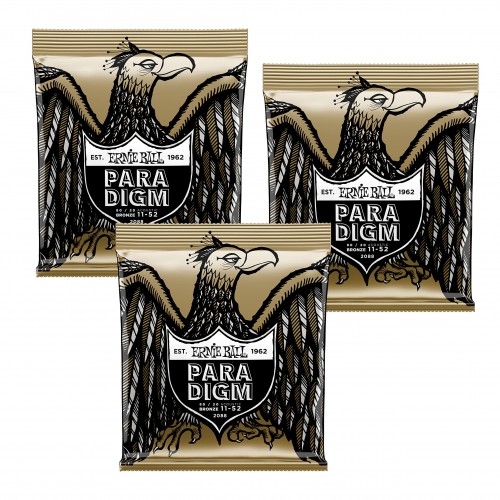 3 PACK Ernie Ball 2088 Paradigm 80/20 Bronze Acoustic Guitar Strings Light 11-52