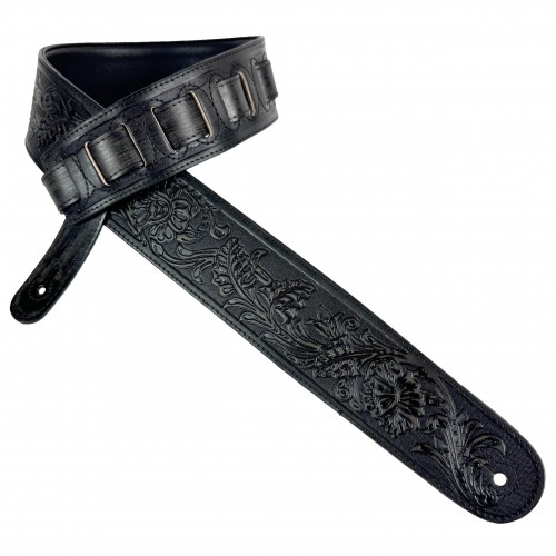 Walker & Williams SP-74 Soft Black Premium Thick Italian Leather Guitar Strap Live Oak Tooling
