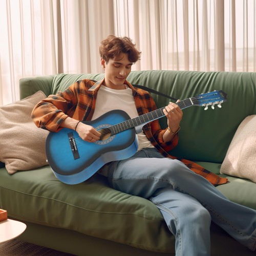 ZENY 38” New Beginners Acoustic Guitar With Guitar Case, Strap, Tuner and Pick (Natural)