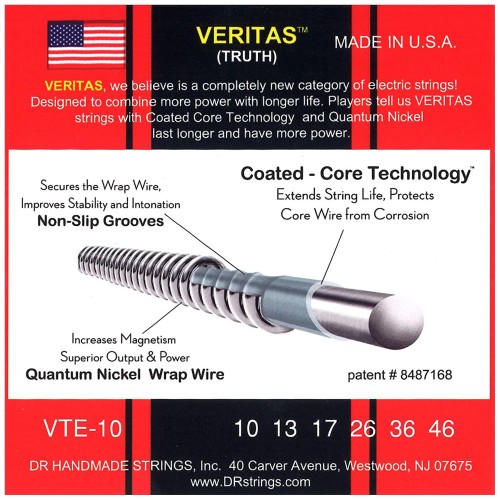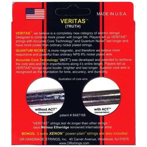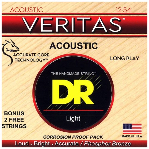 DR Strings Veritas Coated Core Technology Acoustic Guitar Strings, Light 12-54, 3-Pack (VTA-12-3PK)