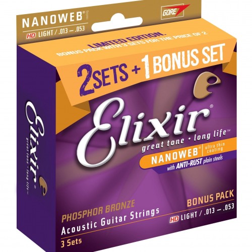 Elixir Strings – Acoustic 8020 Bronze with NANOWEB coating – LightMedium guitar Strings (012-056)