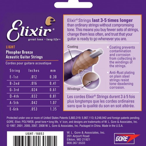 Elixir Strings Phosphor Bronze Acoustic Guitar Strings w NANOWEB Coating, Extra Light (.010-.047)