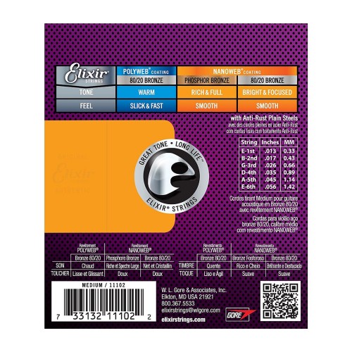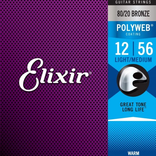 Elixir 11100 80/20 Bronze Polyweb Medium 6-String Acoustic Guitar Strings