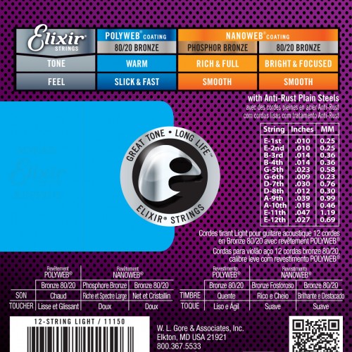 Elixir 11077 80/20 Bronze Nanoweb Light/Medium 6-String Acoustic Guitar Strings