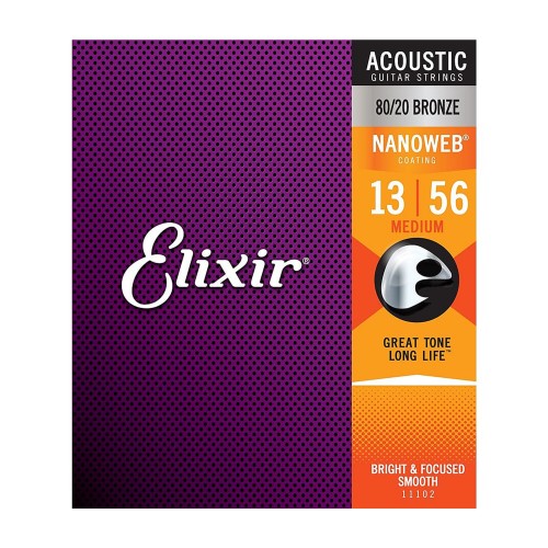 Elixir 11102 80/20 Bronze Nanoweb Medium 6-String Acoustic Guitar Strings