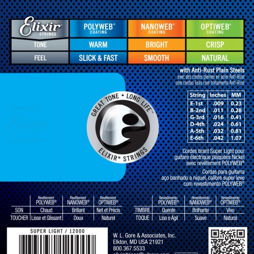 Elixir 12002 Nanoweb Elec. Guitar Strings 9-42 Super Light Nickel Plated Steel New | In Stock