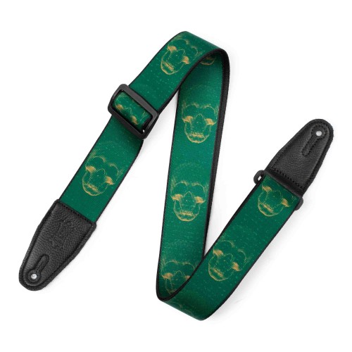Levy’s Leathers MPD2-113 2” Wide Polyester Guitar Strap with Green and Mustard Scanned Skull Motif