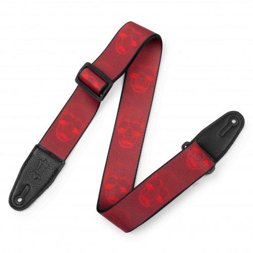 Levy’s Leathers MPD2-114 2” Wide Polyester Guitar Strap with Dark Red and Red Scanned Skull Motif