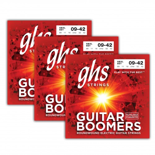 GHS STRINGS – GUITAR BOOMERS GBXL (Extra Light) – 009-042 – (3 PACK) Electric Guitar Strings