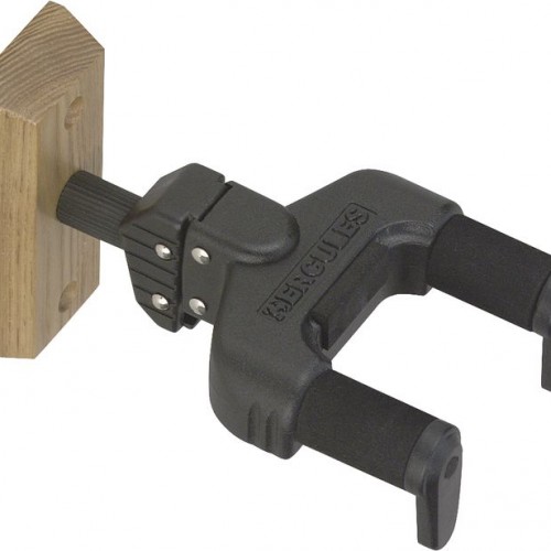 Hercules GSP38WB Plus – Universal AutoGrip Wall Mount Guitar Hanger w/ Wood Base Short Arm