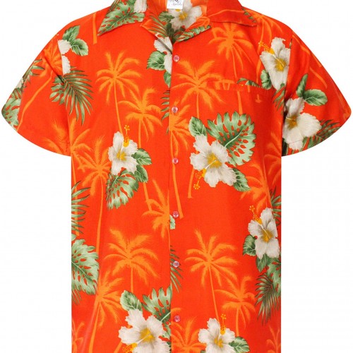 KINg KAMEHA Funky Hawaiian Shirt, Shortsleeve, Small Flower, Orange, 5XL