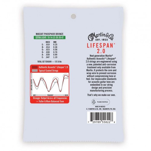 Martin MA530 Authentic Acoustic SP Phosphor Bronze Extra Light 6-String Acoustic Guitar Set