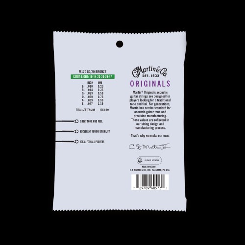 Martin Original M170 80/20 Bronze Extra Light 6-String Acoustic Guitar Set