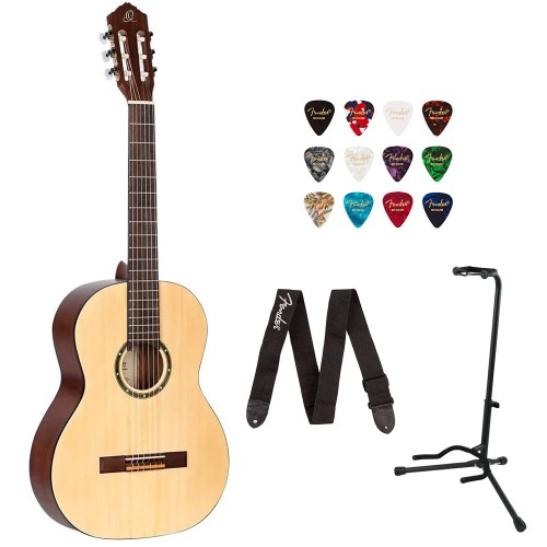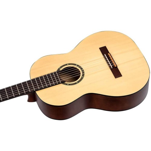 Ortega Guitars 6 String Student Series Pro Solid Top Nylon Classical Guitar, Right, Spruce (R55)