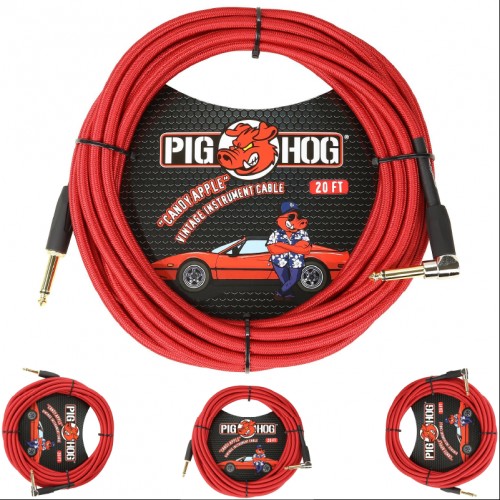 Candy Apple Red 1ft Right-Angled 1/4′ Guitar Patch Cables Pig Hog