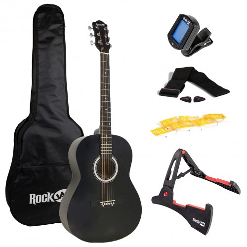 RockJam 6 String Electric Guitar Kit, Right, Black & White, full-size (EG1-BK-SK-V)