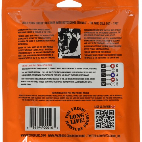 Rotosound RS55LD Linea Pressure Wound Bass Guitar Strings (45 65 85 105)