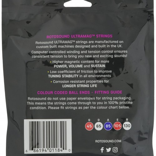 Rotosound SM665 Swing Bass 66 Stainless Steel 5 String Bass Guitar Strings (40 60 80 100 125)