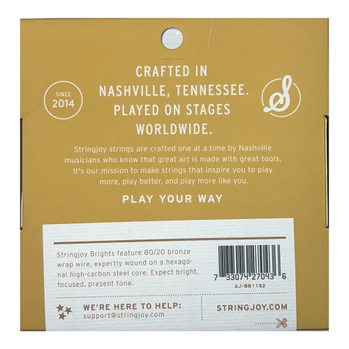 Stringjoy Brights SJ-BB1152 80/20 Bronze Acoustic Guitar Strings – Balanced Super Light .011-.052