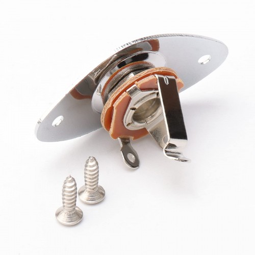 Chrome 1/4inches (6.35mm) Guitar Bass Oval Jack Plate Socket Pickup Output Input Indented