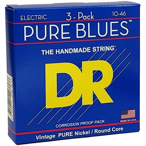 DR Strings Pure Blues Pure Nickel Electric Guitar Strings, Medium 10-46, 3-Pack (PHR-10-3PK)