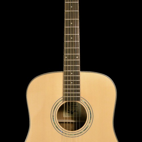 Is it a guitar or a lute? This nylon string guitar has the stylings of a lute, such as the round staffed back and inlayed soundhole, but plays just like a guitar.