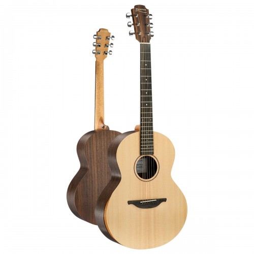 Reminiscent of the days of freight train hopping and hitchhiking musicians, these parlor size guitars deliver exceptional string-to-string balance and well-defined articulation. Whether fingerpicking gently or backhanding open chords, the Roadhouse promises excellent playability with a vintage vibe. It comes equipped with the Fishman Sonitone pickup featuring sound-hole mounted volume and tone controls. This incredibly affordable Roadhouse projects and resonates beautifully alone or plugged in.
