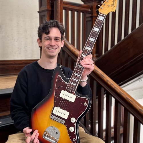 Featuring an as-new PRE-WORN Paisley/sunburst finish, this Berly Psychocaster S-style guitar has a “V” profile lefty maple neck with speed-necked finish and a rosewood fingerboard. Equipped with 3 single-coil pickups, vintage-style tremolo bridge and tuners, modded pickguard. Huge sound and vibe! NO CASE. Made in Texas, USA.