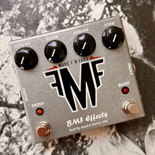 After a 13-year relationship, BMF Effects is proud to offer the Marc F’N Ford Overdrive/Boost signature pedal. The Marc F’N Ford is based on Marc’s personal choices and features a GB Boost (Germanium Booster) on the Boost side (red LED) feeding into a Purple Nurple Overdrive on the Drive side (orange LED). Each side operates independently and can be stacked for even more tonal options. Every Marc F’N Ford Overdrive/Boost pedal is made to exacting specifications and the pedal you purchase is made exactly the same as the one Marc uses onstage.