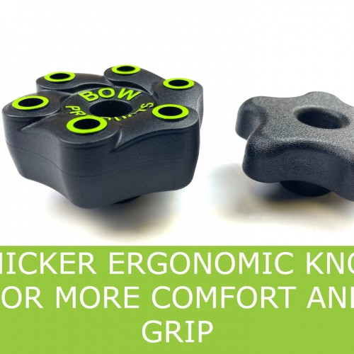 Introducing the new Bow Knobs from BOW Products. Bow Knobs are perfect for all your fixturing needs and more. The Bow Knobs are an update to the original knobs and now feature a sleek Chain link design, are comfortable and ergonomically easy on your hands. Larger than standard knobs, Bow Knobs are easy to grip and tighten. For easy of use and to reduce the number of parts needed, the Bow Knobs come with a recessed nut, allowing you to get a strong, tight securement in just one turn. The knobs have a 5/16” -18 thread and come in a pack of 4. The Bow Knobs are designed to be used with any of the AnchorPRO Hardware Kits, which includes the AnchorPRO Small 3/4” Miter Bar Kit, The AnchorPRO Large 3/4” Miter Bar Kit, the AnchorPRO Small 5/8” Miter Bar Kit, or the AnchorPRO Combo 3/4” Miter Bar Kit. They can be used as replacement knobs for any of the table saw feather boards including the FeatherPRO, FeatherDUO, FencePRO or Portable Saw Featherboard. If you so choose, the Bow Knobs can also be used on cabinets, drawers and doors. Find out why BOW Products is the leader in woodworking tools and has some of the most innovative and safest featherboards and accessories on the market.