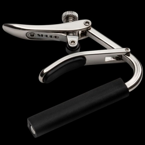 The durable brass construction with brushed nickel finish and a host of other features make the Shubb Standard Capo a best seller. Not to be outdone, the series has been upgraded to include the patented roller ball closure, making this not only the most affordable high-end capo on the market today but the one with the smoothest action. Durability, reliability and affordability define Shubb Standard Capos.