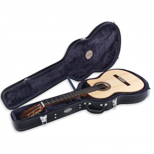 Black hardshell case for full size classical/flamenco guitars. Comes with HumiPod.
