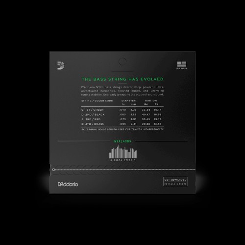 NYXL4095 is a super light gauge string set for long scale basses. The high carbon steel used in NYXL strings offers higher break strength, enhanced tuning stability, and accentuated mid-range
