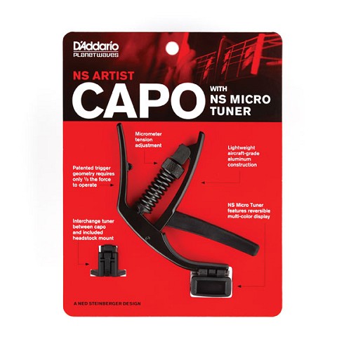Two of our best selling accessories, the NS Artist Capo and the NS Micro Headstock Tuner, together!