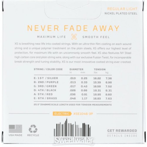 XS is breathing new life into coated strings. With its ultra-thin film coating on every wound string and unique polymer treatment on the plain steels, XS offers our highest level of protection for maximum life with an uncommonly smooth feel. XS also features NY Steel high carbon core and plain string wire, along with our exclusive Fusion Twist, for incomparable break strength and tuning stability. XS is the most innovative coated string ever created.
