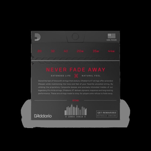 D’Addario XT Classical strings combine our premium, precisely intonating Pro-Arté trebles with our proprietary Composite basses enhanced with our advanced corrosion resistance treatment to deliver dynamic response and enduring tone. Available in normal, hard, and extra-hard tensions.