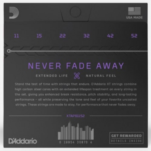 Stand the test of time with strings that endure. D’Addario XT strings combine our strongest high carbon steel with an advanced corrosion resistance treatment on every string in the set, giving you enhanced break resistance and unyielding pitch stability—all while preserving the tone and feel of your favorite uncoated strings. These strings are made to stay, with uncompromising performance that never fades away.