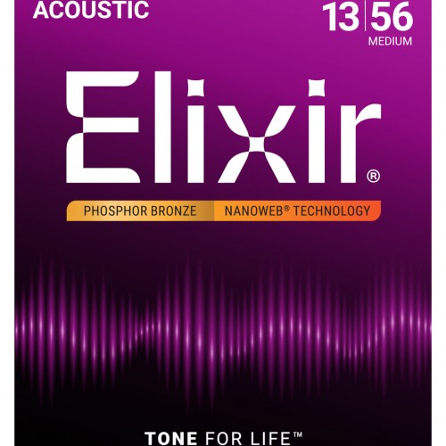 Elixir 16102 Phosphor Bronze Nanoweb Medium 6-String Acoustic Guitar Strings