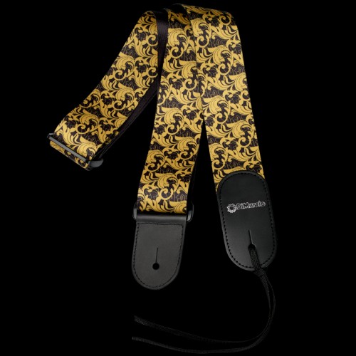 This strap is made of high quality printed microfiber, and the strap ends are stitched leather and button on to an electric guitar. A leather tie-cord is included for use on an acoustic guitar.