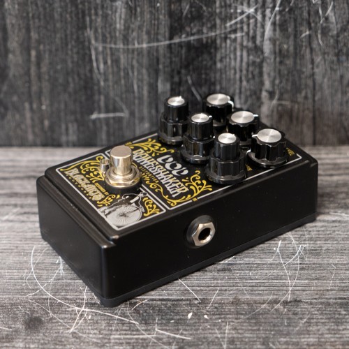 Built on a modified distortion circuit built for low-end power, the DOD Boneshaker brings a three-band parametric EQ with precise controls for mids attenuation and depth/level controls for a focused, visceral presence. Built in tandem with the effects wizards at Black Arts Toneworks, the Boneshaker pairs years of DOD’s pedal-building knowledge with a boutique edge and experimental nature for an expansive distortion.