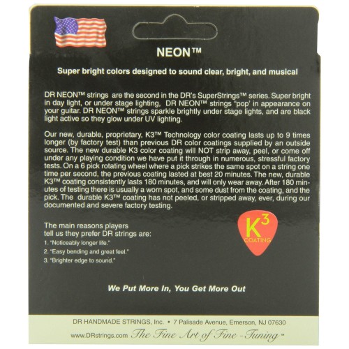 pProduct DescriptionHI-DEF NEON Color Coated Acoustic Guitar Strings are in a wide variety of luminescent color options designed to give your stage presence a little extra pop, especially under UV black lighting. They feature a hexagonal core wire and a silver-plated copper wrap wire on the wound strings. All strings include the neon colored K3 coating, delivering longevity, more projection, fewer unwanted overtones, plus enhanced clarity and articulationFrom the ManufacturerHI-DEF NEON Color Coated Acoustic Guitar Strings are in a wide variety of luminescent color options designed to give your stage presence a little extra pop, especially under UV black lighting. They feature a hexagonal core wire and a silver-plated copper wrap wire on the wound strings. All strings include the neon colored K3 coating, delivering longevity, more projection, fewer unwanted overtones, plus enhanced clarity and articulation. Product Dimension : 4.02 L, 0.39W, 4.02H, Product Weight : 0.011/p