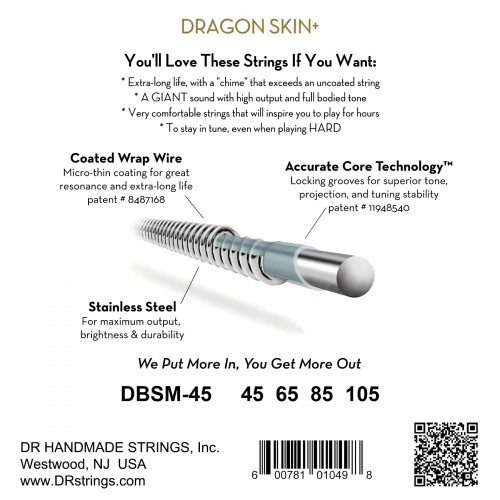 DRAGON SKIN+ – Coated Stainless Steel Bass Strings – DBSM-45 – Superior Sound with Comfortable Feel & Long Life: Multi-Scale Med