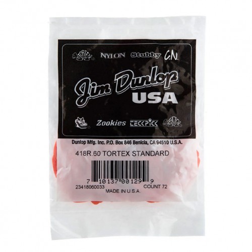 Dunlop Tortex .60mm Orange Guitar & Ukulele Picks – 72 Pack