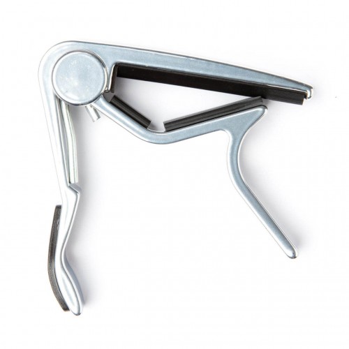 The Dunlop Trigger Capo allows you to quickly and easily change key with a squeeze of the hand. This capo’s strong spring-action clamp keeps it firmly in place, while its slim profile ensures that can play up and down the fingerboard unhindered. Special padding protects your instrument’s neck from scratches. Made from lightweight aircraft-grade aluminum, the Trigger Capo is a must on the road when you need to change key on the fly.