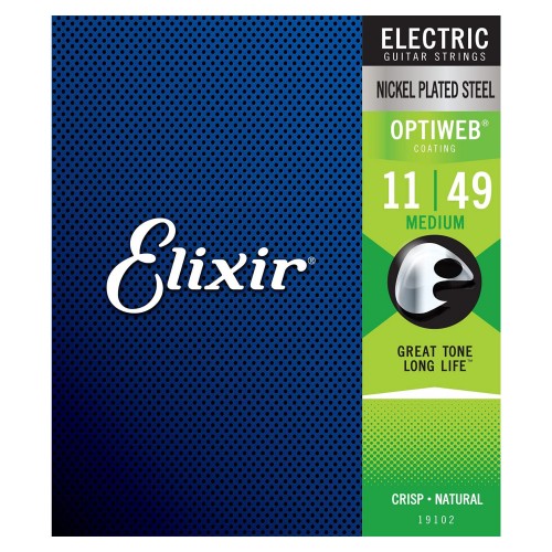 Elixir® Electric Nickel Plated Steel Strings with OPTIWEB®Coating give you the performance of a natural string — that crisp tone, natural feel and playable grip you know and love—without sacrificing the signature long-lasting tone life of Elixir Strings.