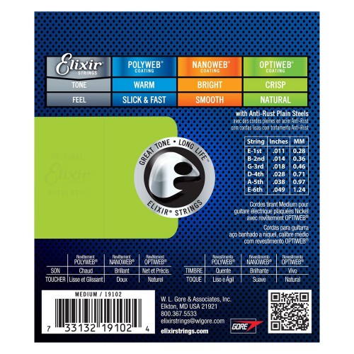 Elixir 19102 Optiweb Nickel Plated Steel Electric Guitar Strings – Medium .011-.049