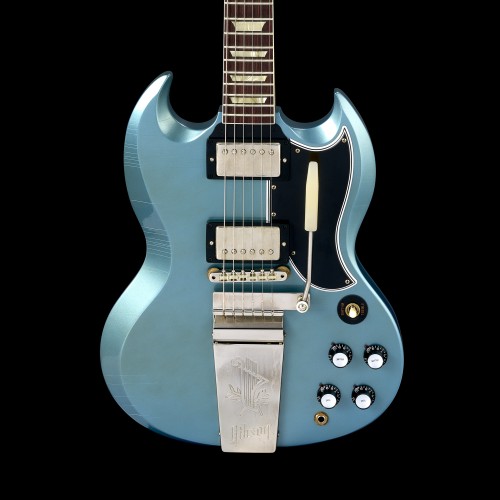 Finished in a breathtaking Aged Pelham Blue, this Les Paul Custom features all the hallmarks of a classic: multi-ply binding, block inlays, and timeless Custom styling. Premium brushed nickel hardware includes Grover® Locking Rotomatic® tuners and a wraparound Lightning Bar bridge for superior sustain, rock-solid tuning stability, and smooth playability.