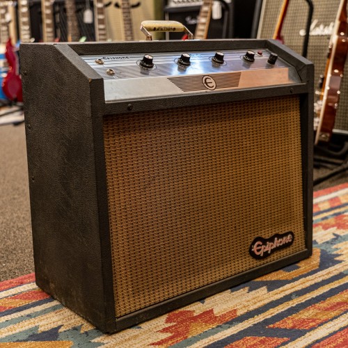 Sweet closet-classic vintage Epiphone amp. CTS speaker-loaded. Footswitch included, in good vintage condition. Lower power scale, around 10-15 tube watts. Upgraded to 3-prong power cable.