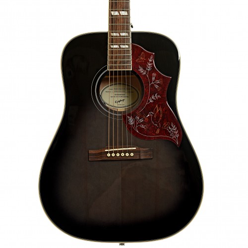 Nicely made import version of this venerated model. Featuring a gloss transparent black finish, this Epi Hummingbird has a dreadnought body of a solid X-braced spruce top with mahogany back and sides. Factory Fishman pickup system. NO CASE. Import.
